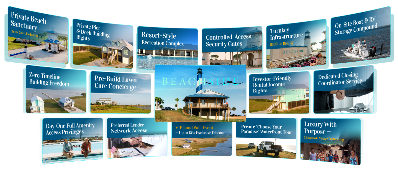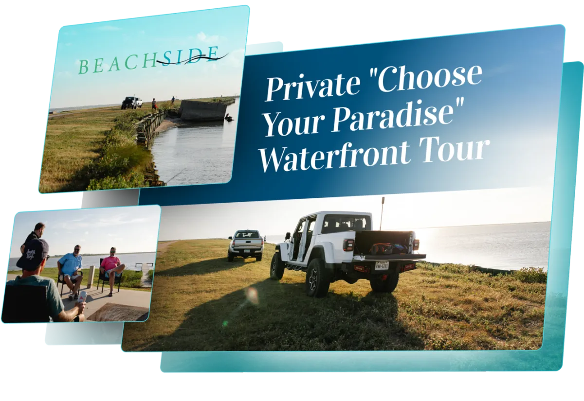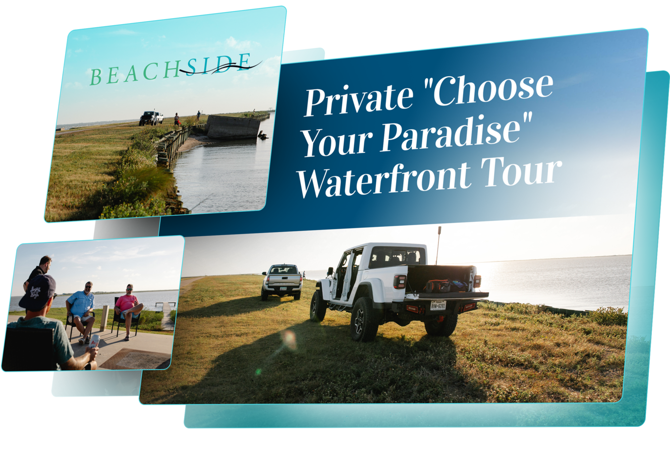 The next step is simple: reserve your spot at the Beachside Land Sale Event or book a private tour. Once you submit your information, our team will call you in as little as ten minutes to confirm a date and time, send you directions and details, and answer any initial questions. From there, you just need to show up, experience Beachside for yourself, and decide whether this is the waterfront lifestyle you have been looking for.