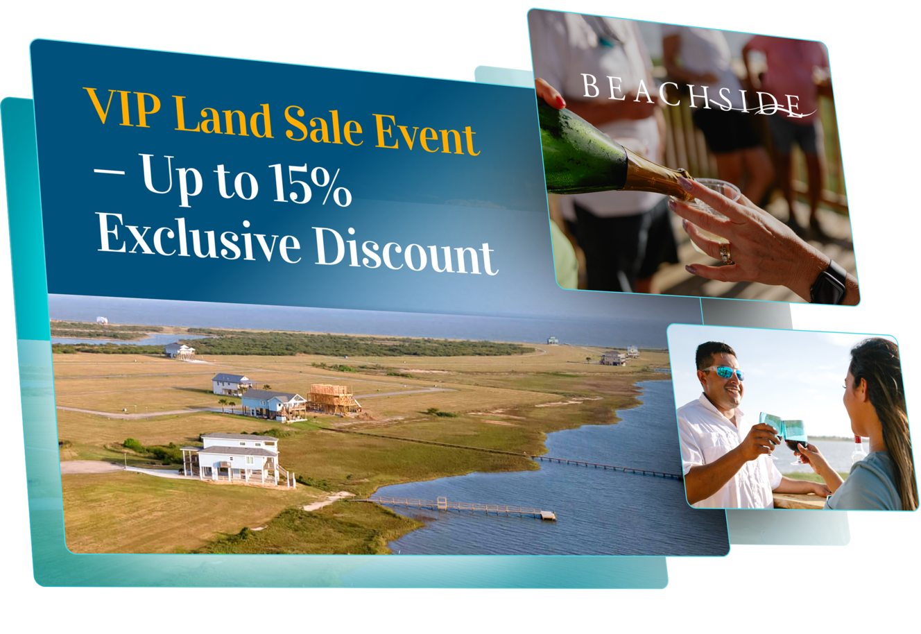 When you join our Land Sale Event, you’ll be given developer-direct pricing. Your dedicated closing concierge researches Texas banks, handles all paperwork, and helps with financing approval. You’ll own a property with the freedom to build when ready, or hold it as a coastal asset that works on your terms.