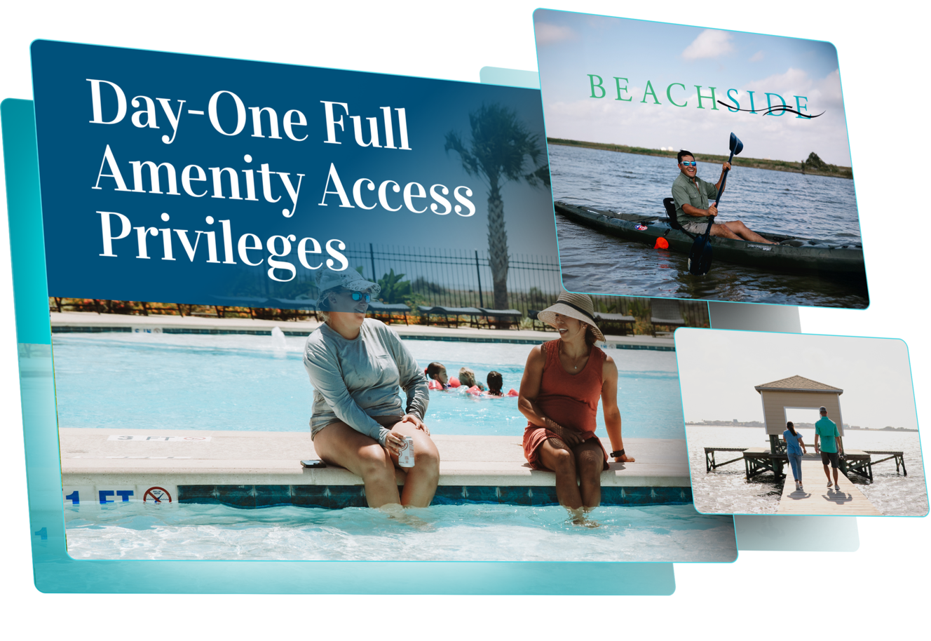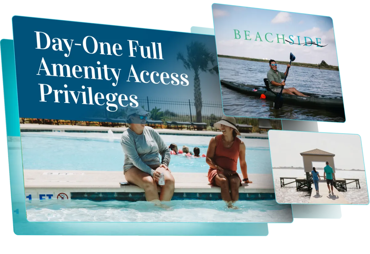 Most buyers close within 30 to 45 days after signing a contract. During that time, your closing concierge coordinates with the lender, title company, and a mobile notary so the process is as hands-off as possible. Once you close, you gain full access to Beachside’s amenities including the pool, clubhouse, private beach, piers, and boat/RV storage. Many owners start enjoying weekends at Beachside long before they ever build a home.